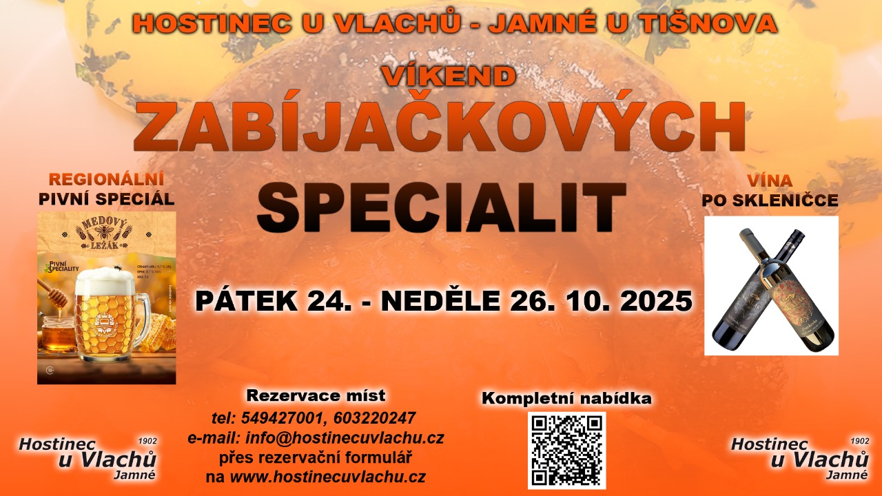 VÍKEND ZABÍJAČKOVÝCH SPECIALIT 24. - 26. 10. 2025