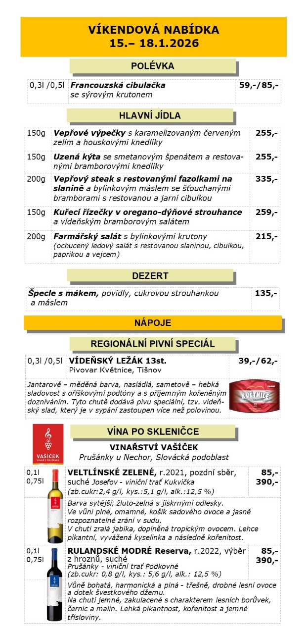 VÍKENDOVÁ NABÍDKA 15.-18.1.2026